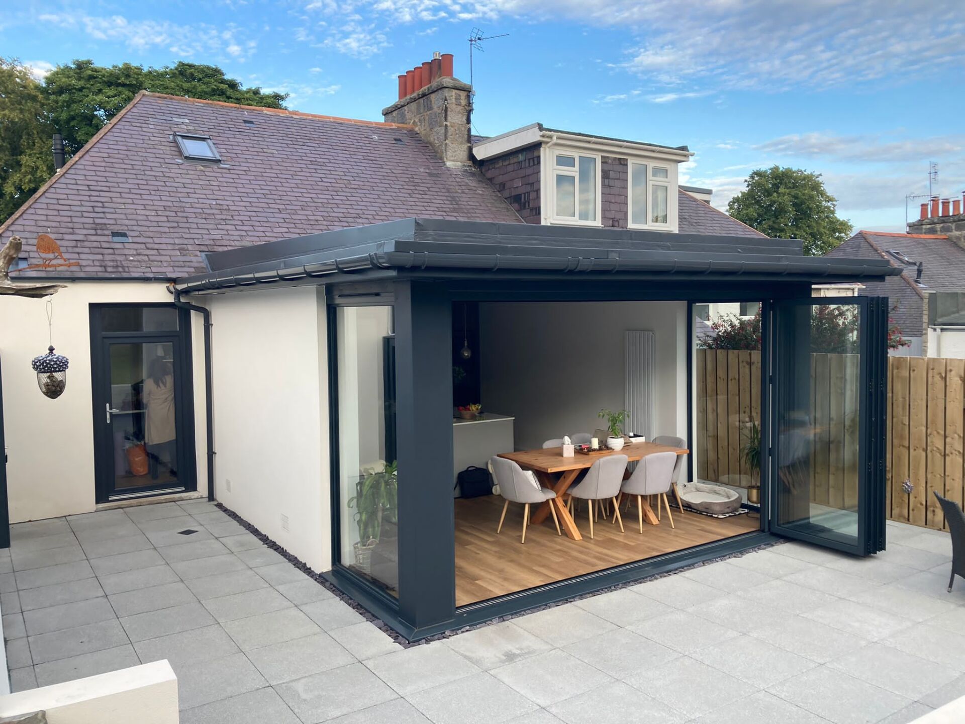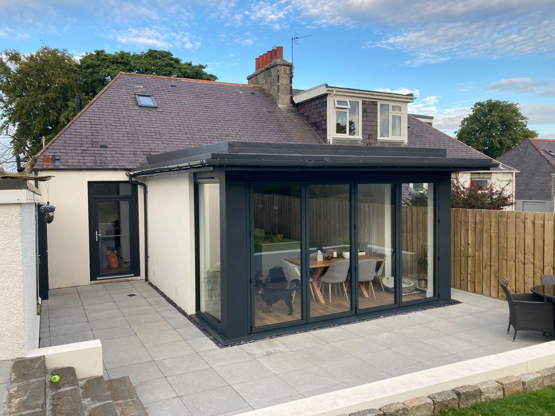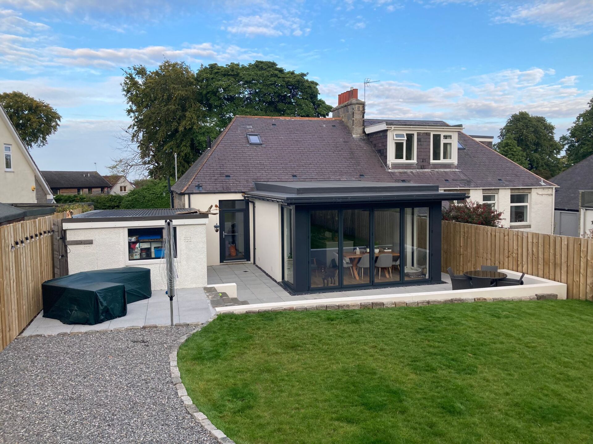 Kenfield Crescent is the refurbishment and extension of an existing granite semi detached dwelling.